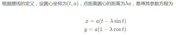 設(shè)圓的半徑為 r ,在x軸上滾動(dòng) x距離則意味著旋轉(zhuǎn)了 x \ r 弧度,則其滾動(dòng)所產(chǎn)生的擺線如下