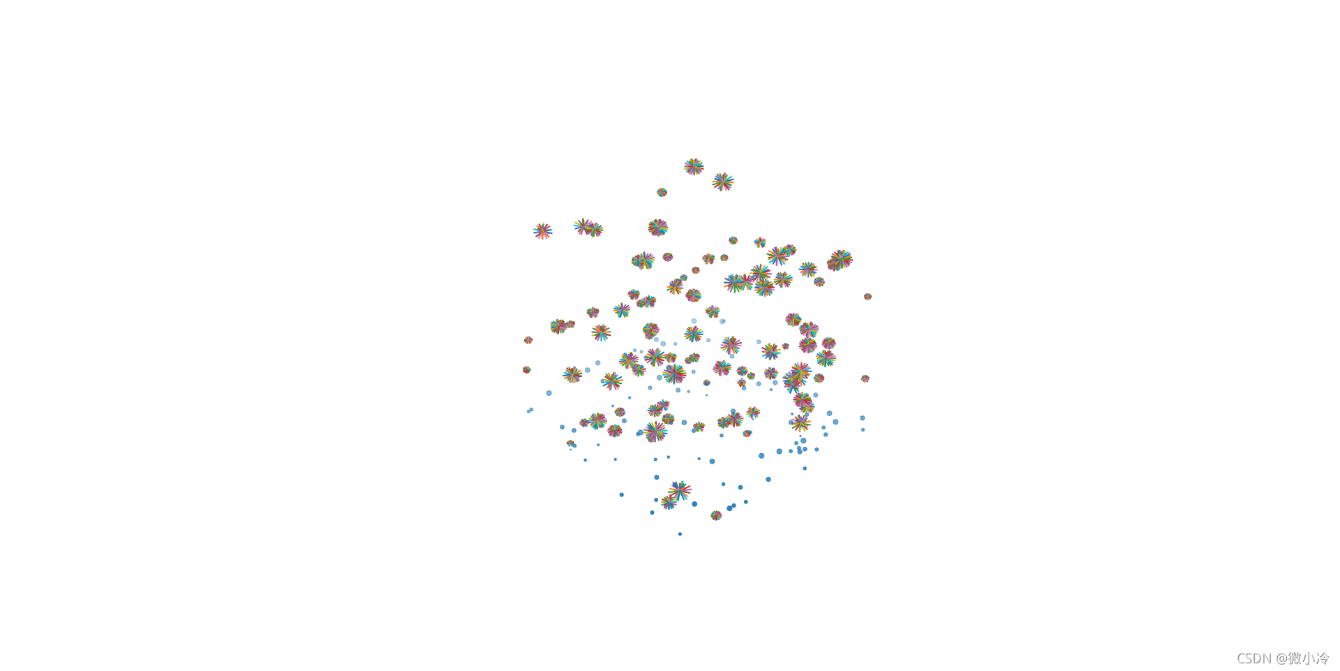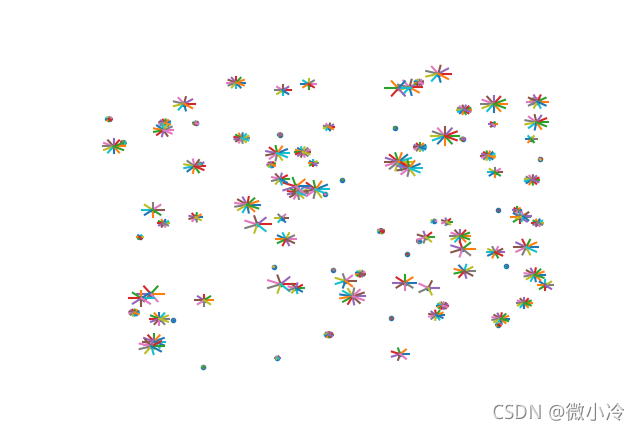 如果隨機生成一些點,然后為每個點繪制一些枝杈,則可以畫出類似蒲公英這種結(jié)構(gòu),只是看上去不太好看而已