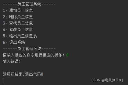 若輸入的數(shù)字不是1-6,則會(huì)退出程序: