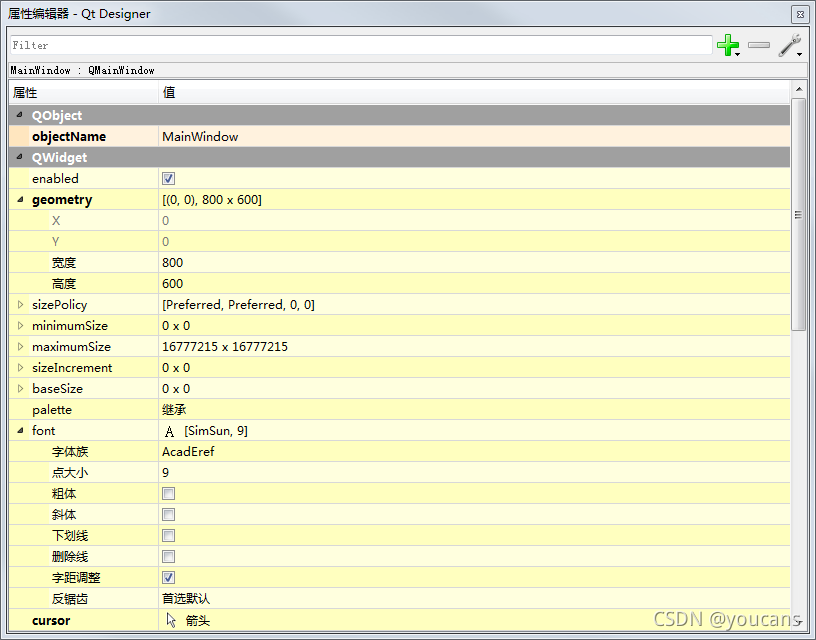 objectName:控件名,非常重要。準(zhǔn)確的說(shuō)是控件的 ID,Python 程序中訪問(wèn)控件、控件交互都是使用 objectName。所有控件都必須具有唯一的 objectName,不能重名。不能使用中文字符。