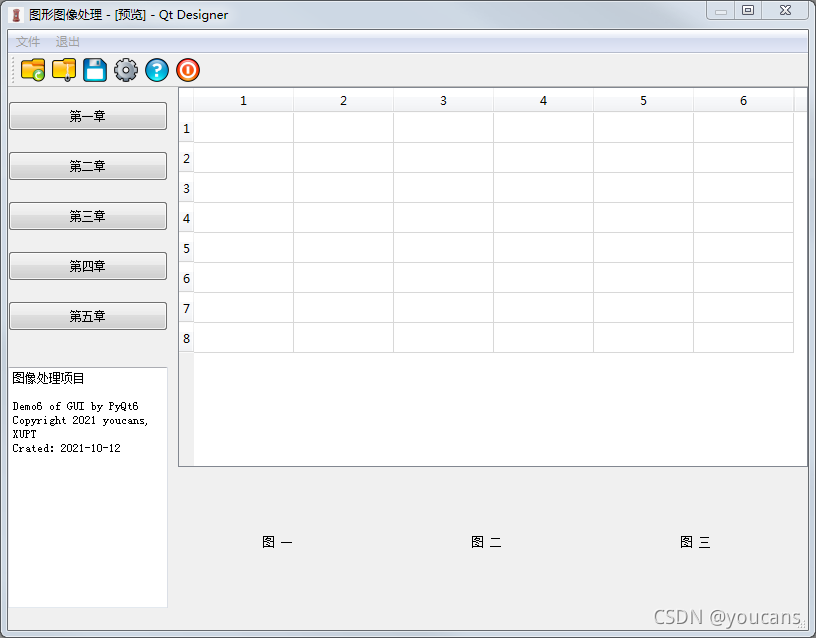 例如,對上圖的圖形窗口,為左上容器設置垂直布局,并添加多個按鈕控件;為左下容器設置垂直布局,并添加文本編輯控件;右容器不設置布局管理器,直接添加表格控件;為右下容器設置水平布局,并添加多個標簽控件。