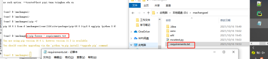 1.5、命令查看現(xiàn)有的包并創(chuàng)建requirements.txt文件