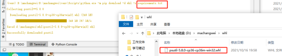 不用指定鏡像源,指定了失敗。Pycharm已經(jīng)設(shè)置添加了上面的清華源了。將之前安裝的psutil下載到whl