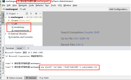E:\假設(shè)是內(nèi)網(wǎng)新機器\machangwei\venv\Scripts\pip.exe install --no-index --find-links=whl -r requirements.txt