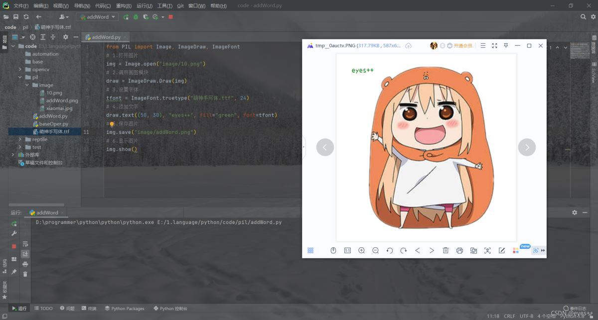 要在圖像上繪制文本要用到 PIL 的兩個(gè)模塊:ImageDraw和ImageFont。 ImageDraw 用于創(chuàng)建繪圖對象,ImageFont用于加載字體。