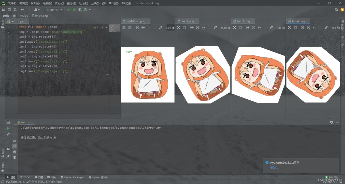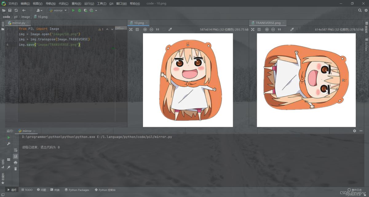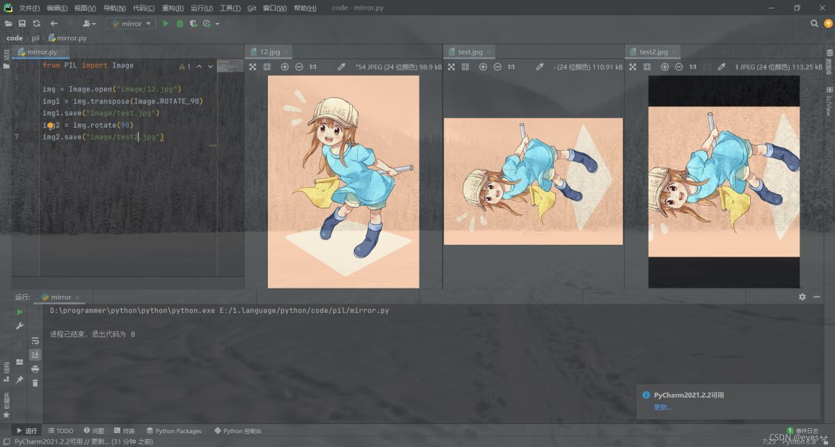 除了使用transpose制造鏡像,使用rotate也可以的,不過rotate只能旋轉(zhuǎn):