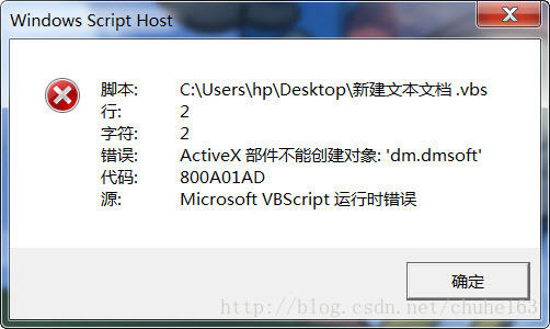 vbs調(diào)用插件報:ActiveX部件不能創(chuàng)建對象,代碼:800A01AD