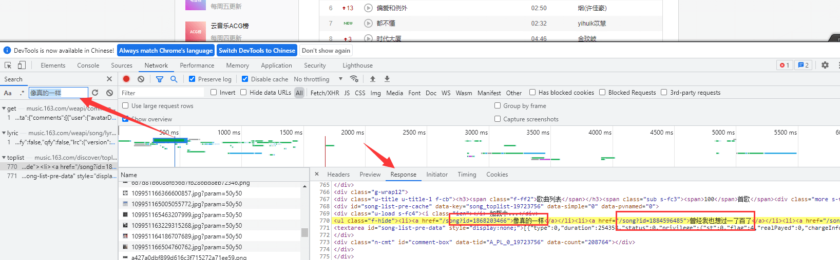 打開這個網(wǎng)站 在里面去分析我們需要的數(shù)據(jù) 每個音樂的名稱 id