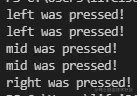 你會(huì)發(fā)現(xiàn),每條打印都被打印了兩次,這是因?yàn)榘聪氯ズ吞饋?lái)都會(huì)觸發(fā)鼠標(biāo)事件。
