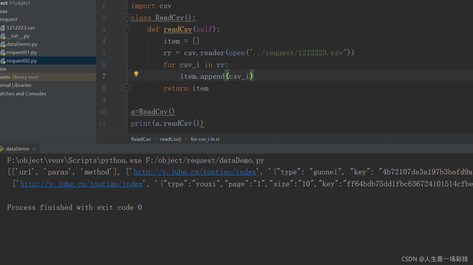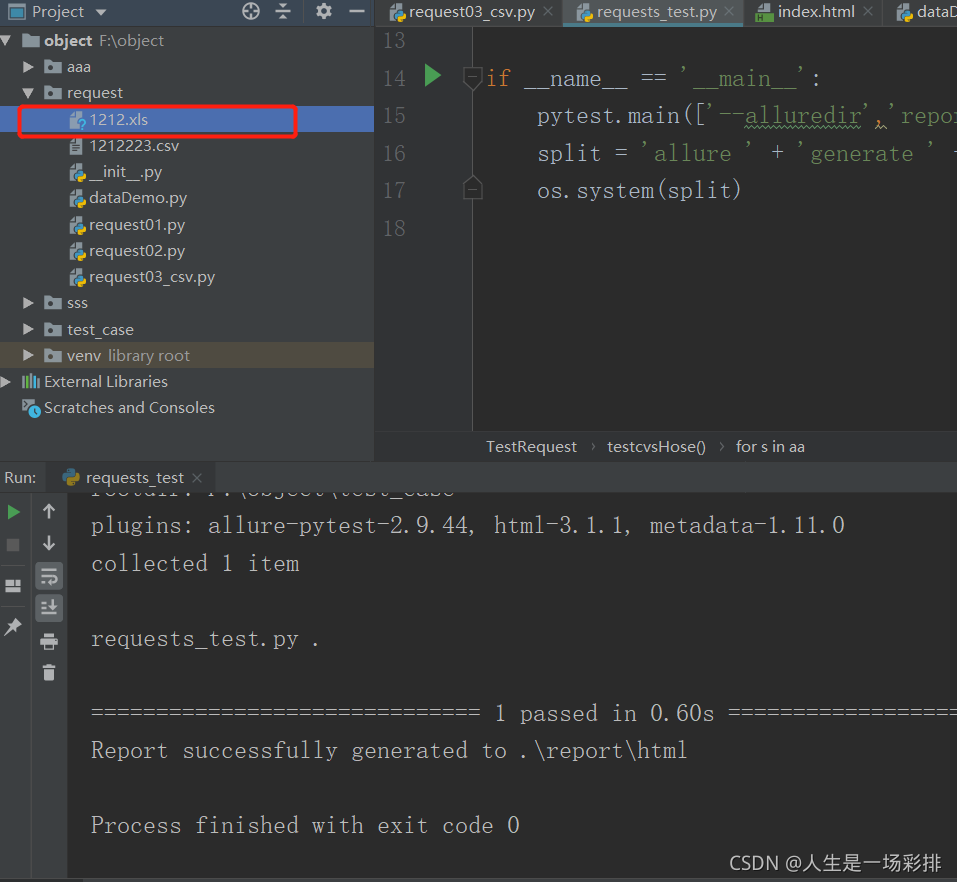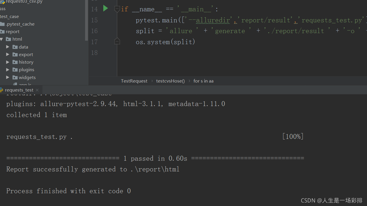 讀取文件中的數(shù)據(jù) requests拿到數(shù)據(jù)請求接口返回狀態(tài)碼通過斷言驗(yàn)證返回狀態(tài)碼和200對比生成allure的測試報(bào)告