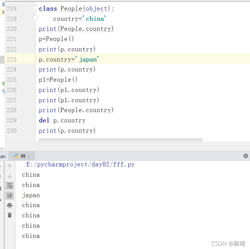 7.通過實例(對象)去修改類屬性對象修改類屬性,只對本對象有效果,對別的對象沒有影響
