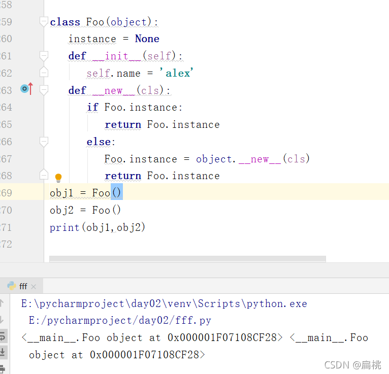 實質(zhì):使用__new__方法新建類對象時先判斷是否已經(jīng)建立過,如果建過就使用已有的對象