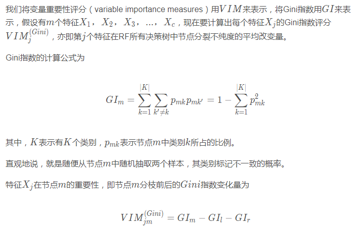 好了,那么這個(gè)貢獻(xiàn)是怎么一個(gè)說(shuō)法呢?通??梢杂没嶂笖?shù)(Gini index)或者袋外數(shù)據(jù)(OOB)錯(cuò)誤率作為評(píng)價(jià)指標(biāo)來(lái)衡量。
