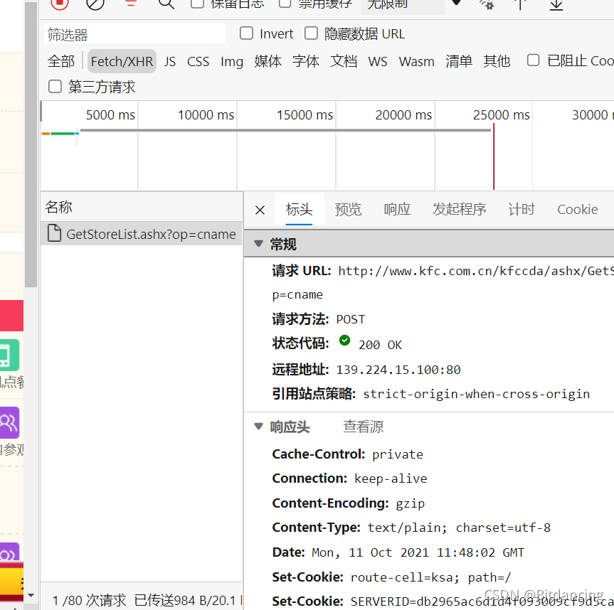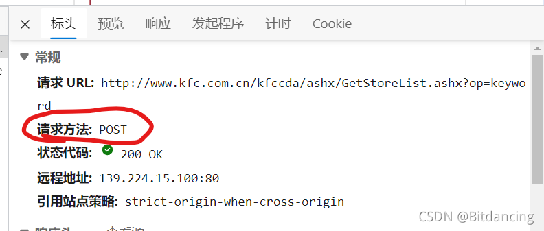 查看肯德基官網(wǎng)的請(qǐng)求方法:post請(qǐng)求。