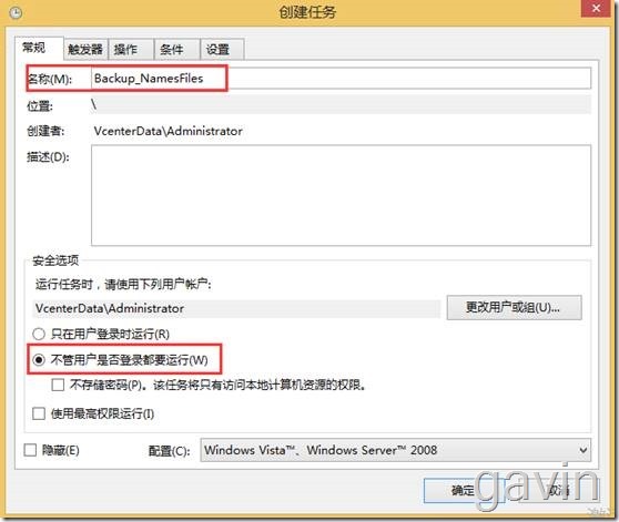 定義計(jì)劃任務(wù)命名:及運(yùn)行方式:不管用戶(hù)是否登陸都要運(yùn)行