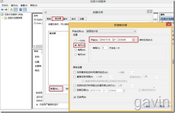 程序運(yùn)行計(jì)劃,每天23.54執(zhí)行一次。勾選---已啟用選項(xiàng)