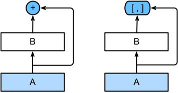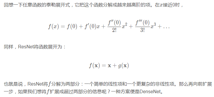 上圖中,左邊是ResNet,右邊是DenseNet,它們在跨層上的主要區(qū)別是:使用相加和使用連結(jié)。