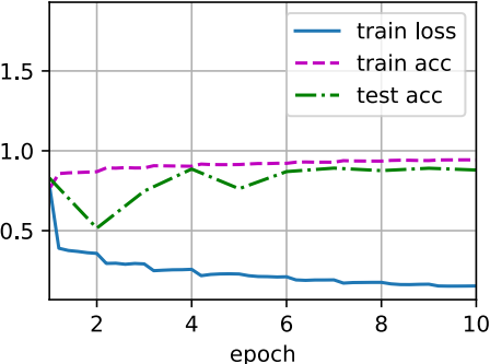loss 0.154, train acc 0.943, test acc 0.880 5506.9 examples/sec on cuda:0