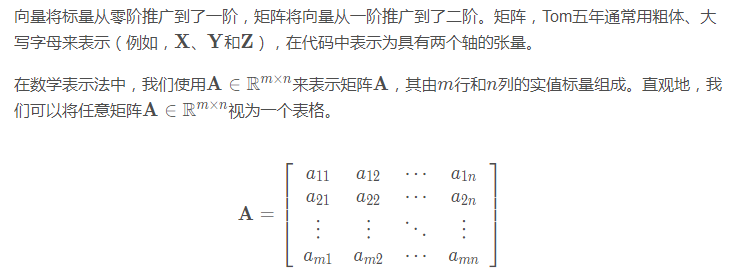 注意,維度(dimension)這個(gè)詞在不同上下文時(shí)往往會(huì)有不同的含義,這經(jīng)常會(huì)使人感到困惑。為了清楚起見,我們?cè)诖嗣鞔_一下。向量或軸的維度被用來(lái)表示向量或軸的長(zhǎng)度,即向量或軸的元素?cái)?shù)量。然而,張量的維度用來(lái)表示張量具有的軸數(shù)。在這個(gè)意義上,張量的某個(gè)軸的維數(shù)就是這個(gè)軸的長(zhǎng)度。
