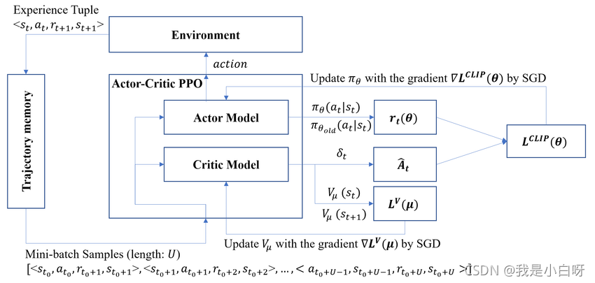 PPO (Proximal Policy Optimization) 即近端策略優(yōu)化. PPO 是一種 on-policy 算法, 通過實現(xiàn)小批量更新, 解決了訓(xùn)練過程中新舊策略的變化差異過大導(dǎo)致不易學(xué)習(xí)的問題.