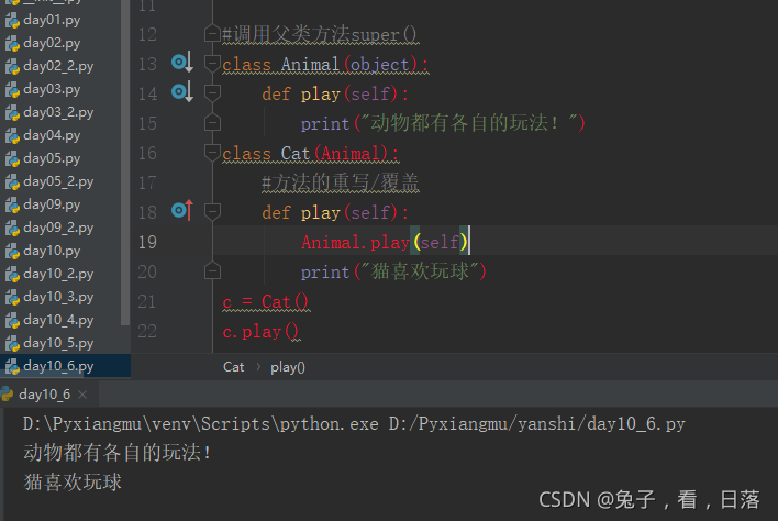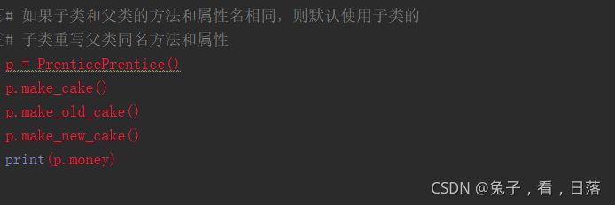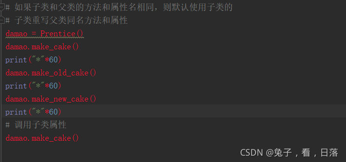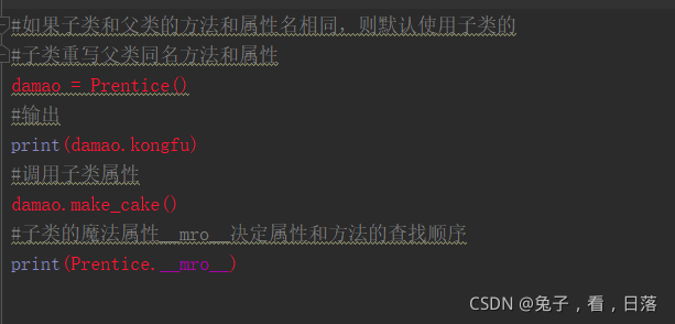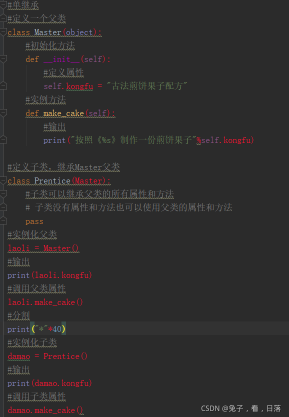 子類在繼承的時(shí)候,在定義類時(shí),小括號(hào)()中為父類的名字 父類的屬性、方法,會(huì)被繼承給子類