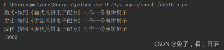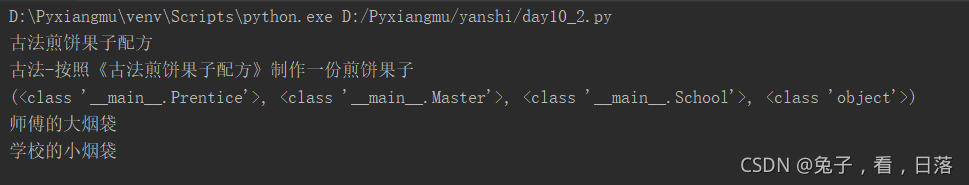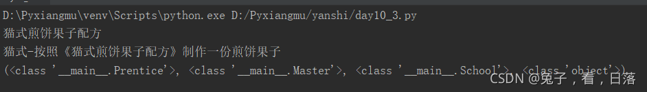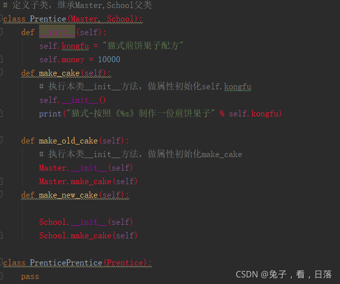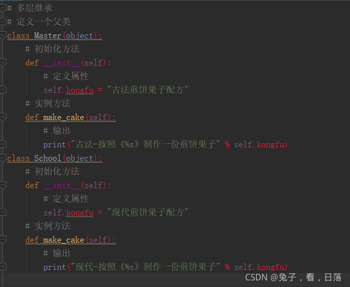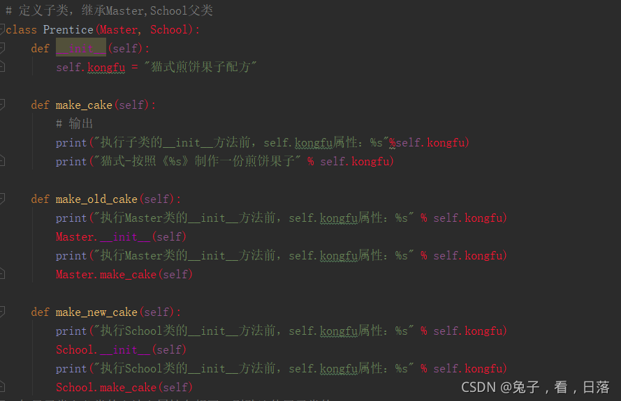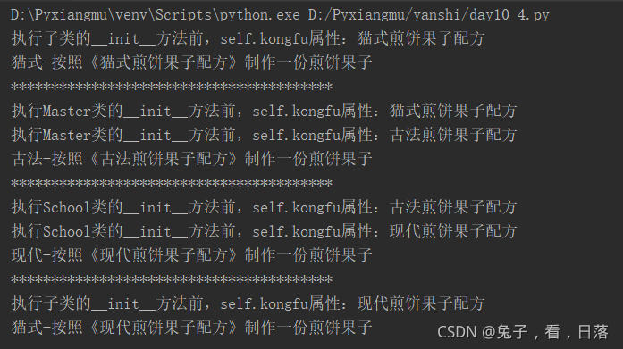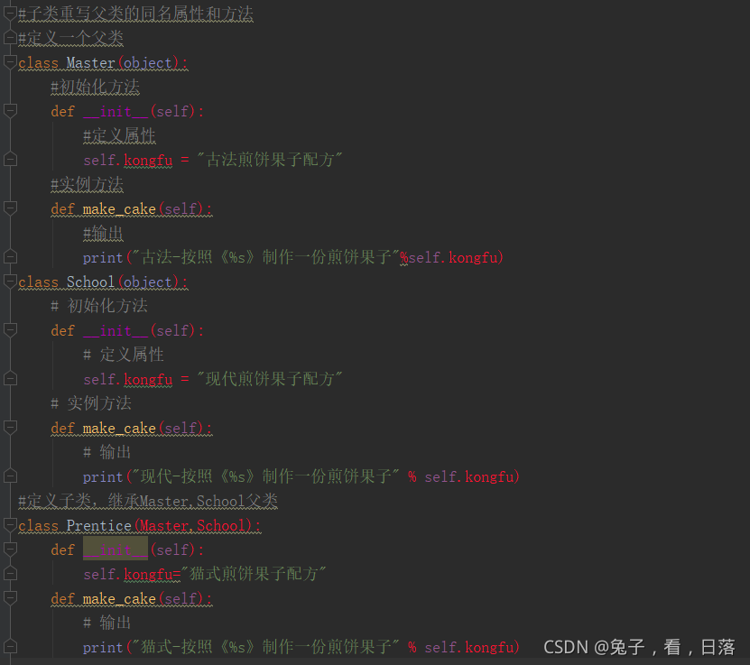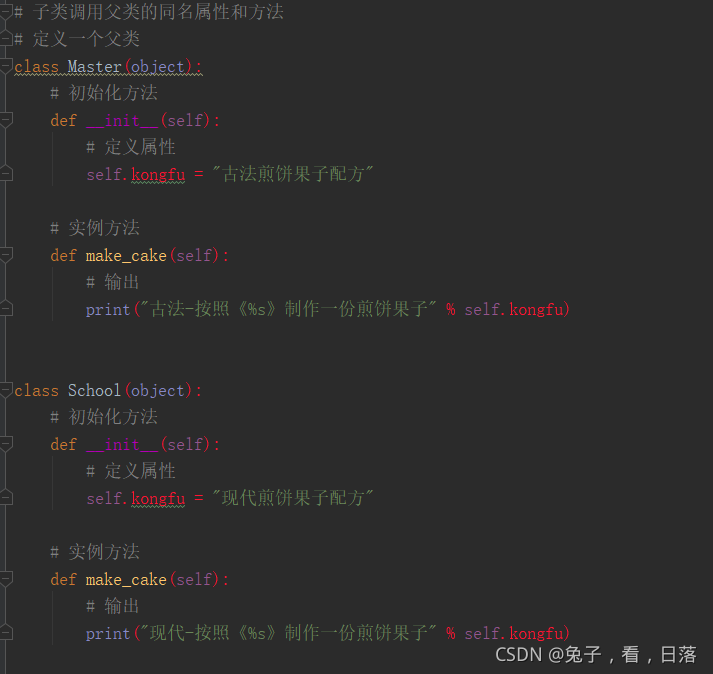 大貓的新配方大受歡迎,但是有些顧客希望也能吃到古法配方和 現(xiàn)代配方 的煎餅果子...(子類調(diào)用父類的同名屬性和方法)