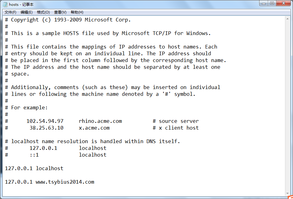 進(jìn)入hosts文件,可以看到映射已被寫(xiě)入在hosts.txt的最后