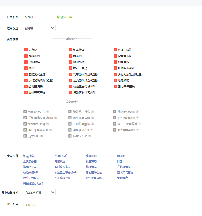 IP 白名單,只是個(gè)人簡(jiǎn)單測(cè)試的話0.0.0.0/0 即可,如果考慮安全問題, 可以將自己的 IP 填進(jìn)去, AK 參數(shù)泄露的話非本機(jī) IP 無法訪問,這樣也不用擔(dān)心額度被其他用戶盜用