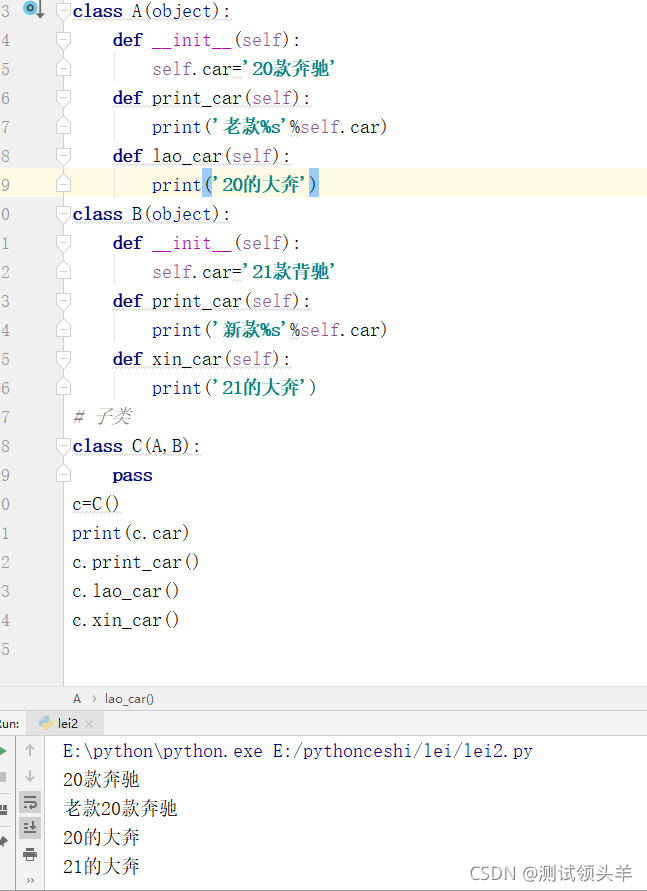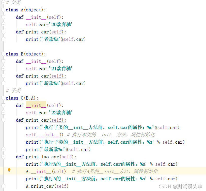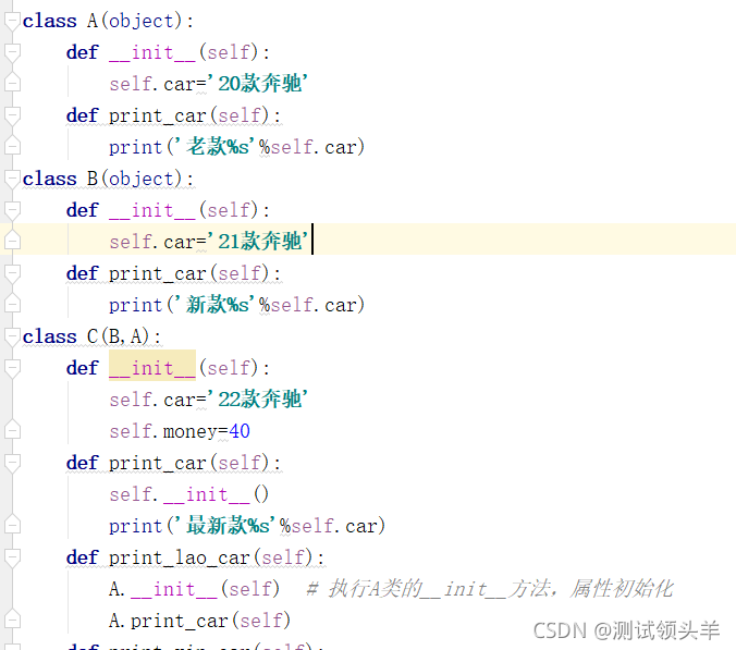 print('執(zhí)行A的__init__方法前,self.car的屬性:%s' % self.car)