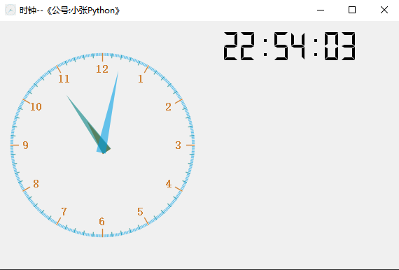 self.setWindowTitle('時鐘--《公號:小張Python》')