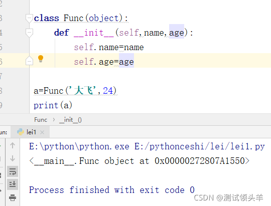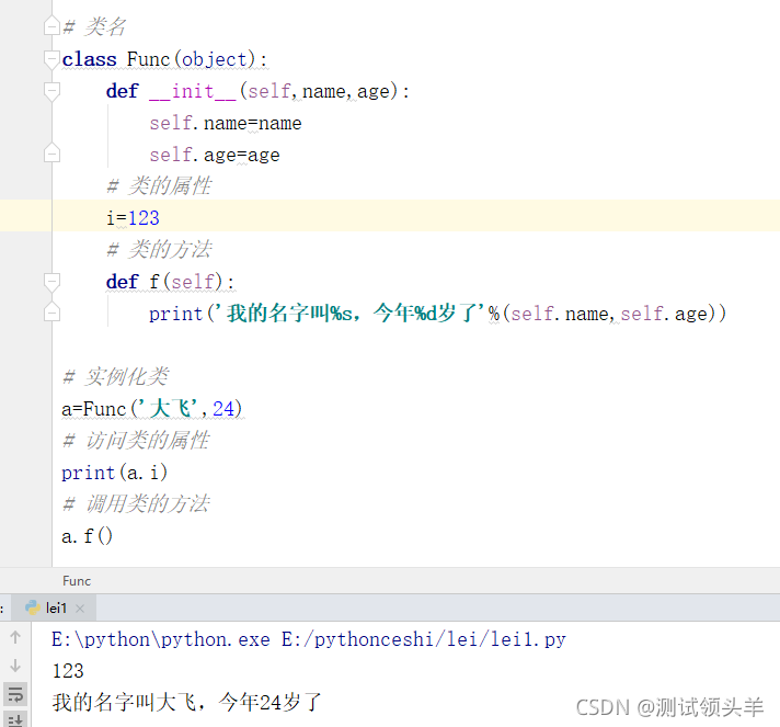 f 是一個(gè)實(shí)例方法,第一個(gè)參數(shù)一般是self,表示實(shí)例對(duì)象本身,當(dāng)然了可以將self換為其它的名字,其作用是一個(gè)變量 這個(gè)變量指向了實(shí)例對(duì)象