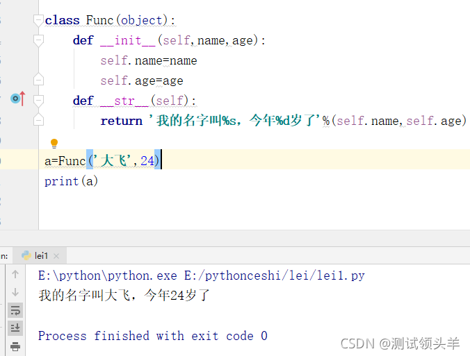 str 如果一個(gè)類中定義了__str__方法,在打印對(duì)象時(shí),默認(rèn)輸出該方法的返回值,沒(méi)有定義會(huì)返回對(duì)象的地址