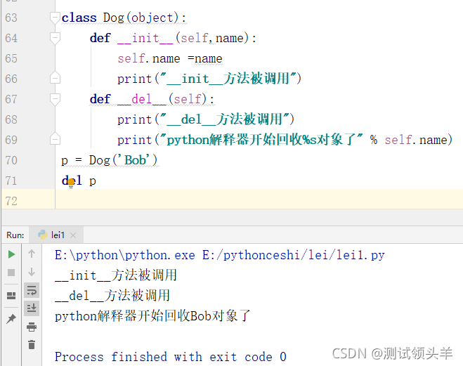 當(dāng)刪除對(duì)象時(shí),python解釋器會(huì)默認(rèn)調(diào)用一個(gè)方法,這個(gè)方法為_(kāi)_del__()方法