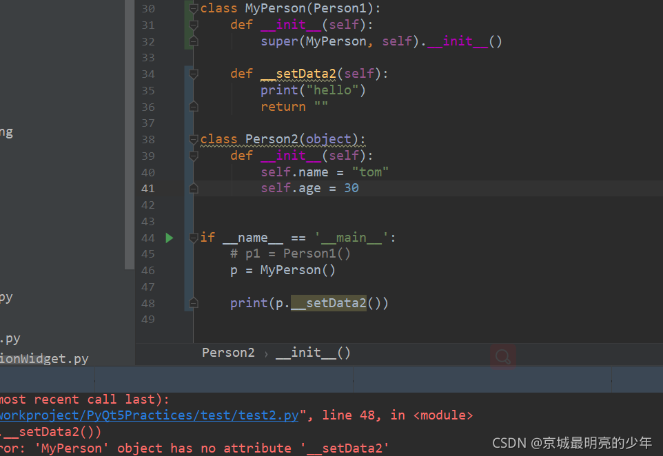 這種就更簡單了,其實(shí)就是私有的變量和函數(shù),子類不能用,一用就報(bào)錯(cuò)。