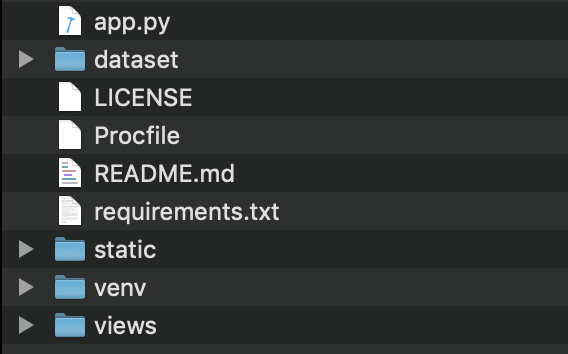 app.py:為我們的入口文件,我們所有的python代碼將在這個(gè)里邊實(shí)現(xiàn),最終運(yùn)行也是通過:python app.py來啟動(dòng)服務(wù)