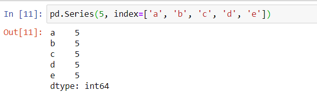 pd.Series(5, index=['a', 'b', 'c', 'd', 'e'])