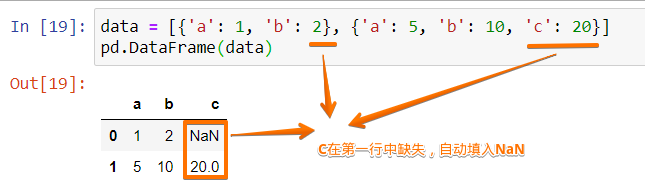 大家可以想想,如果一個(gè)字典的value是array或者list的時(shí)候,那么這個(gè)字典其實(shí)就是一種表格結(jié)構(gòu),圖為DataFrame是一個(gè)表格結(jié)構(gòu)的數(shù)據(jù)類型,我們是可以通過這樣的字典來創(chuàng)建DataFrame,例如下邊這段代碼