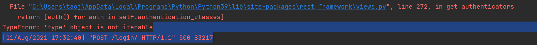 是restframework內(nèi)部(第三方包)報出的錯誤!
