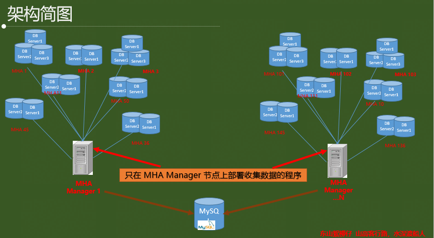 MHA集群數(shù)百個(gè),MHAManager 節(jié)點(diǎn) 十幾個(gè),一個(gè)MHAManager 節(jié)點(diǎn)管理著50-60個(gè)集群。 我們希望開發(fā)的程序,只在這十幾個(gè)MHAManager 節(jié)點(diǎn)部署運(yùn)行,就可以收集到所需的所有 MHA Server 節(jié)點(diǎn)信息、VIP 信息、運(yùn)行狀態(tài)信息及其他信息,并且將收集到的數(shù)據(jù)保存到MySQL 數(shù)據(jù)庫中。