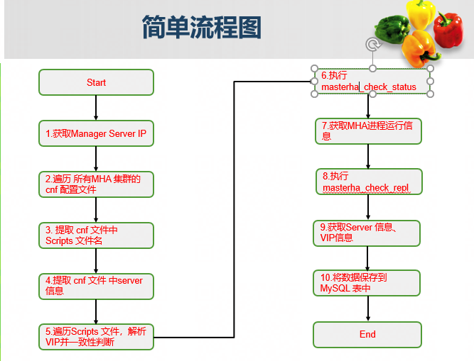 1.檢查MySQL復(fù)制狀況; 2.解析當(dāng)前主節(jié)點(diǎn)IP; 3.解析 slave 節(jié)點(diǎn)IP; 4.解析出VIP。 |