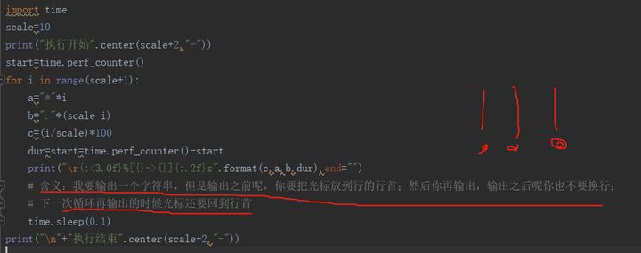 實(shí)例2:每次進(jìn)度不換行,只是不斷地進(jìn)行刷新:用后打印的字符覆蓋之前的字符