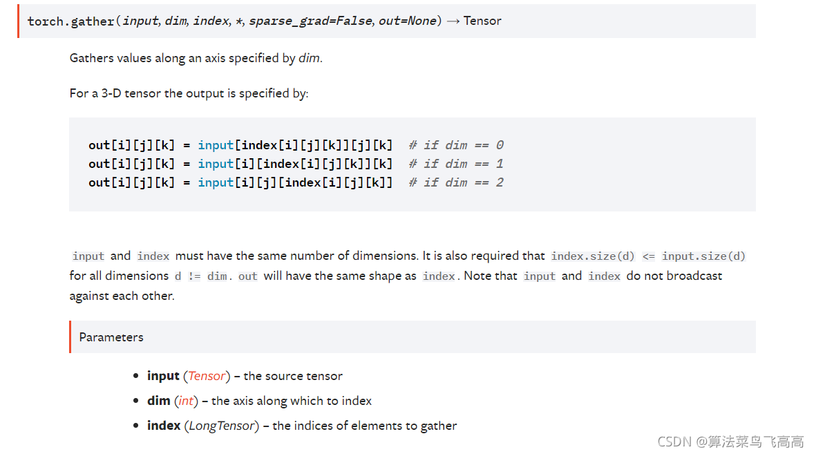 gather所需要的第一個參數(shù)是待索引的數(shù)據(jù),在我們的問題中 roi_loc就是這個input。第二個參數(shù)dim,是你的索引數(shù)據(jù)要作用在哪個軸上,正如前面所言,我們想索引第二個軸(dim=1).