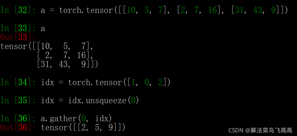 input和gather必須在維度上相同,假設數(shù)據(jù)還是3 * 3,index也是1 * 3的(注意這里是二維的)