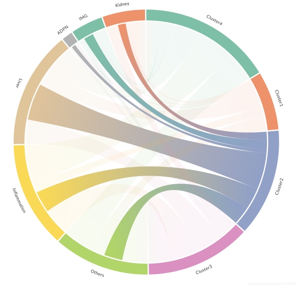 弦圖主要用于展示多個(gè)對(duì)象之間的關(guān)系,連接圓上任意兩點(diǎn)的線段叫做弦,弦(兩點(diǎn)之間的連線)就代表著兩者之間的關(guān)聯(lián)關(guān)系。