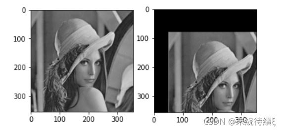 # 定義平移矩陣,需要是numpy的float32類型# x軸平移50,y軸平移80, 2*3矩陣 M = np.array([[1, 0, 50], [0, 1, 80]], dtype=np.float32) # 用仿射變換實(shí)現(xiàn)平移 new_image = cv2.warpAffine(image, M, (w, h), borderValue=(0, 0, 0))