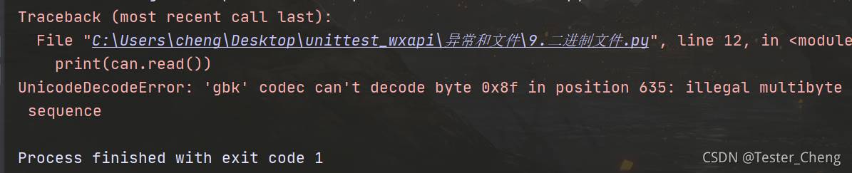file_name = "C:/Users/cheng/Desktop/can.jmx" with open(file_name, 'rb', ) as can: #讀取文本文件,size是以字符為單位的 #讀取二進(jìn)制文件,size是以字節(jié)為單位的 print(can.read(100))