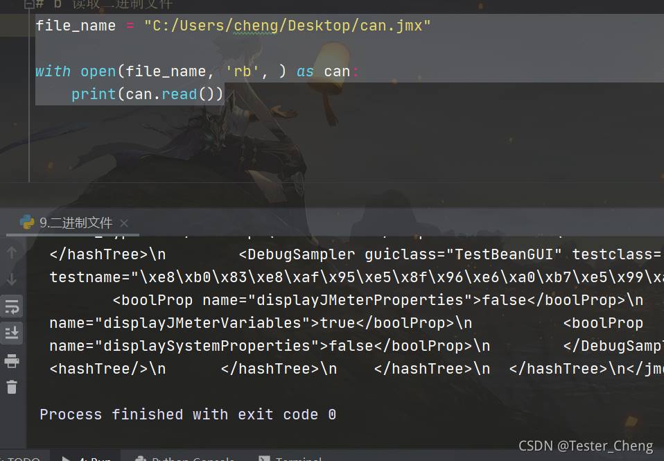file_name = "C:/Users/cheng/Desktop/can.jmx" with open(file_name, 'rb', ) as can: print(can.read())