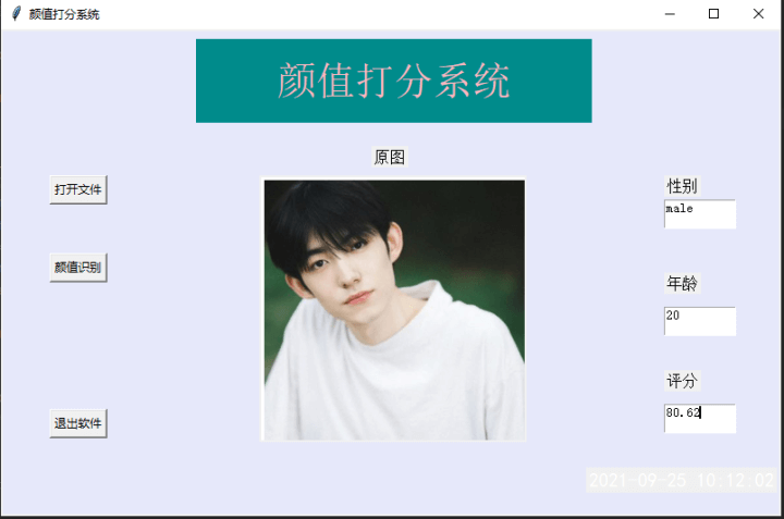 lb = tk.Label(self.root, text='顏值打分系統(tǒng)',