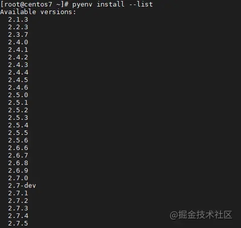 我們通過pyenv的install命令,可以查看pyenv當(dāng)前支持哪些Python版本,如下所示: