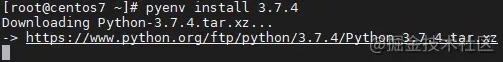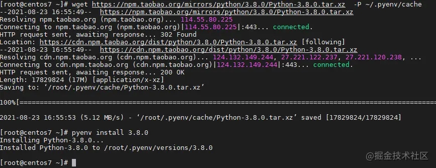 使用國內(nèi)源下載之后,再次執(zhí)行pyenv install命令安裝時(shí),會跳過下載,直接進(jìn)行安裝。